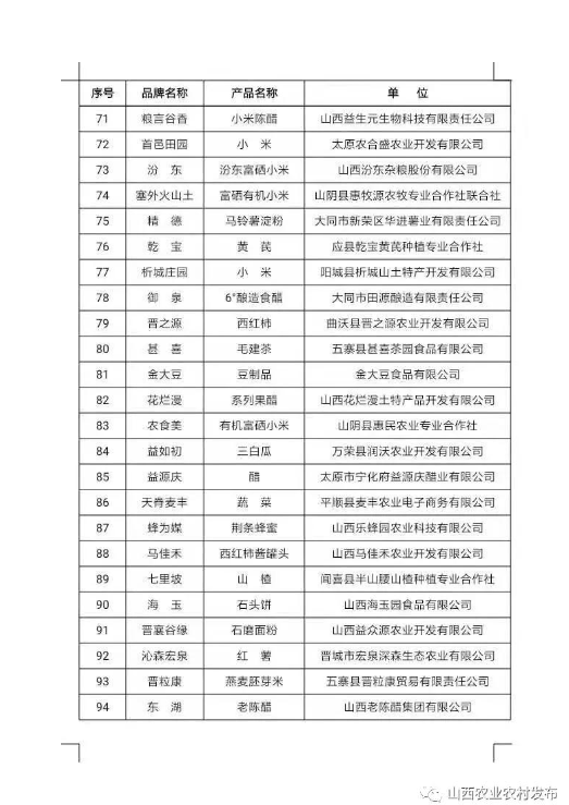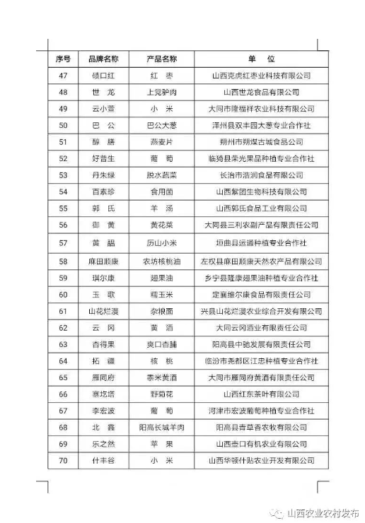 附件:擬入選2021年山西特優(yōu)農產品品牌目錄庫名單