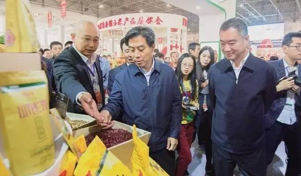 開幕式后,高建民、丁文祿、王清憲、王立偉等領導來到呂梁山雜糧交易中心巡館,饒有興致地察看了各地展品,聽取產(chǎn)品特色、市場銷售以及企業(yè)發(fā)展等情況介紹。