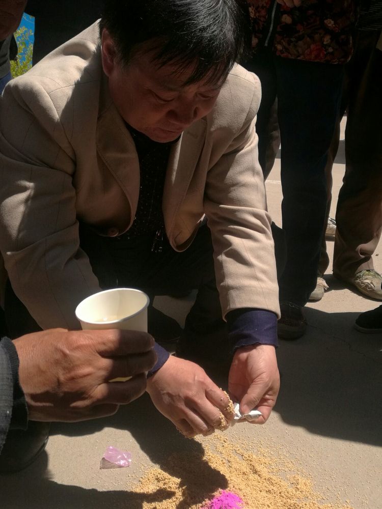 專(zhuān)家為農(nóng)戶現(xiàn)場(chǎng)進(jìn)行拌種技術(shù)示范指導(dǎo)