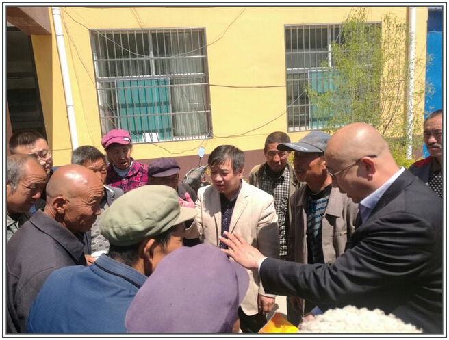山花爛漫農(nóng)業(yè)綜合開(kāi)發(fā)有限公司賀虎平董事長(zhǎng)為農(nóng)戶講解相關(guān)政策